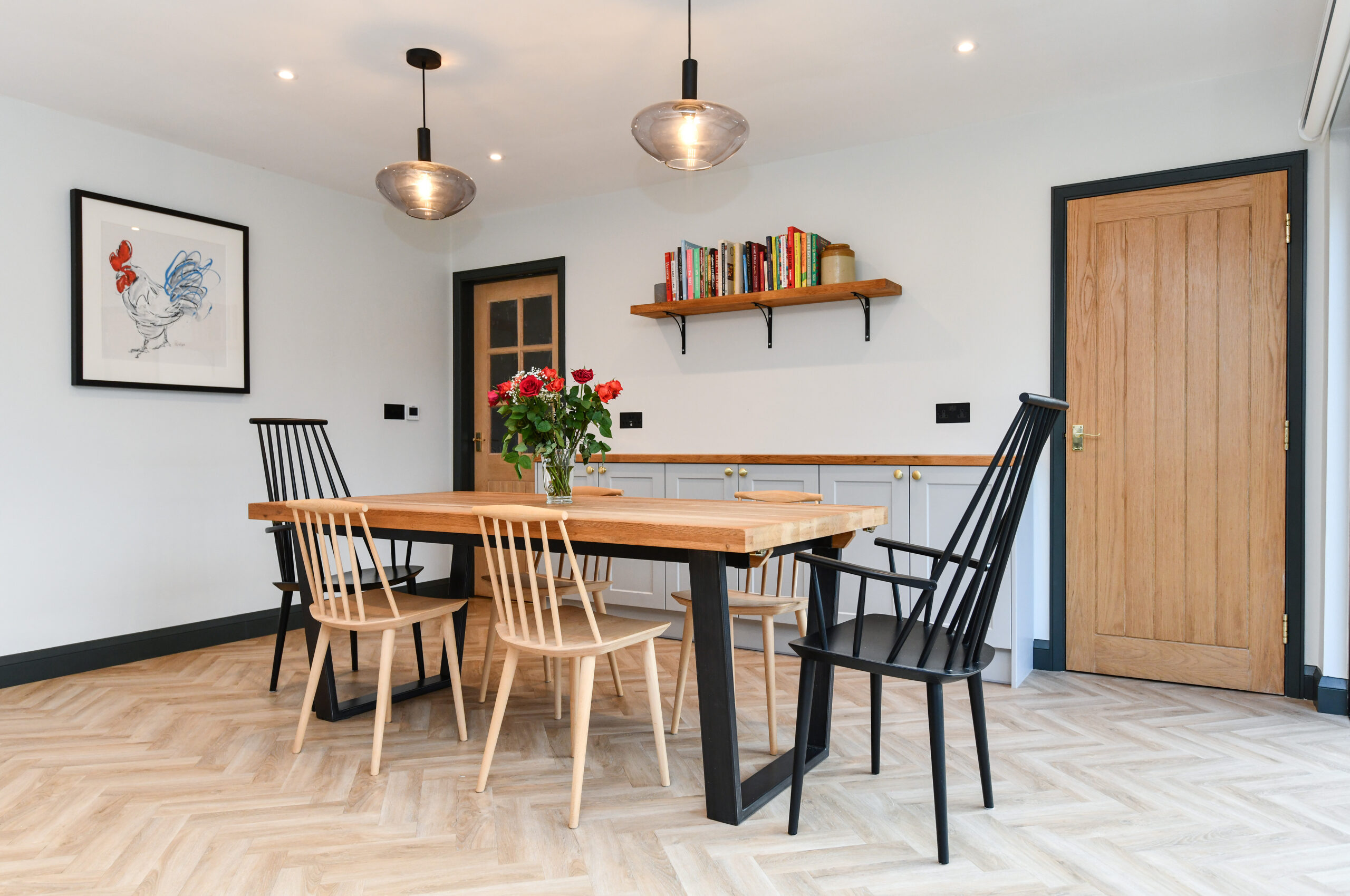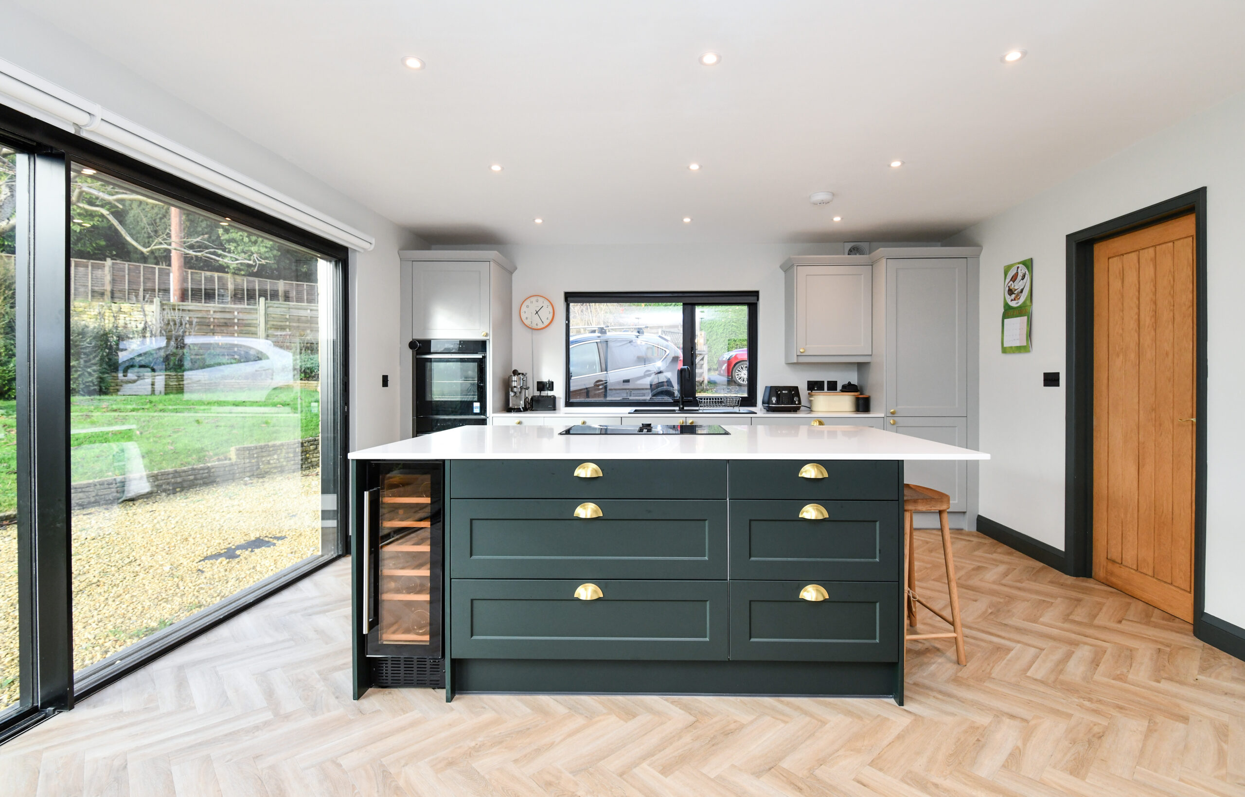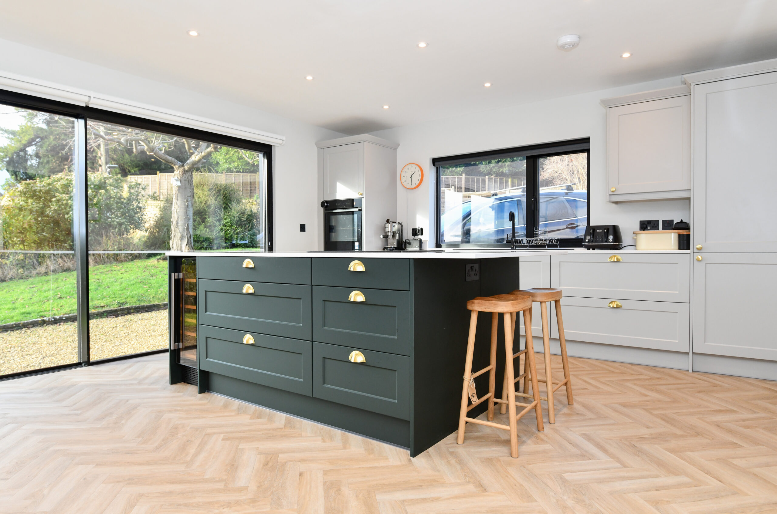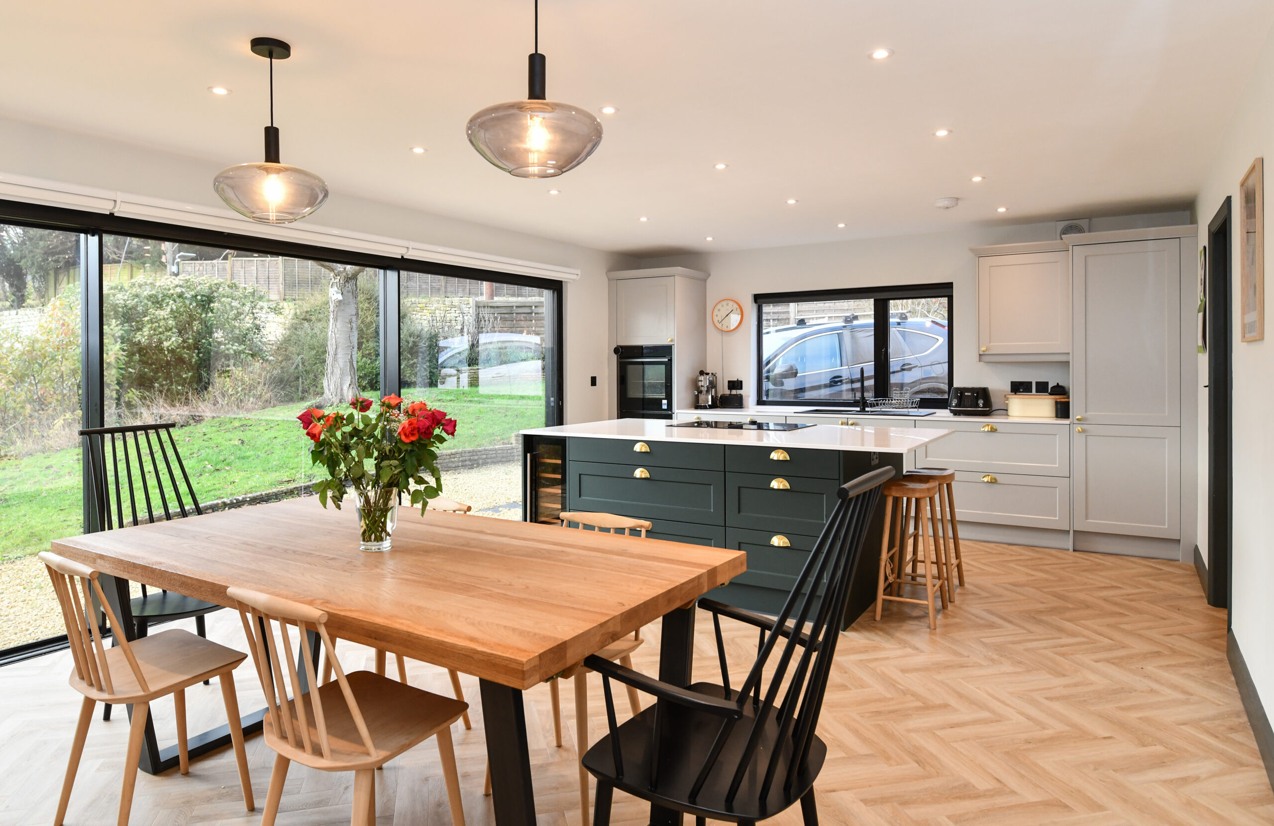 The open-plan layout is centred around a statement island, providing a functional and sociable focal point for cooking, dining and gathering. The project demonstrates how strong design, quality materials and skilled workmanship can enhance both the appearance and usability of a home.