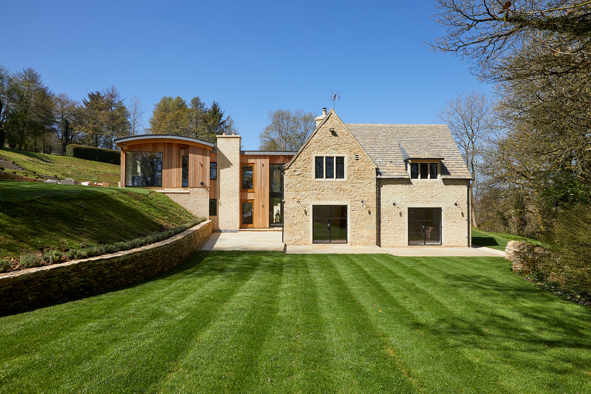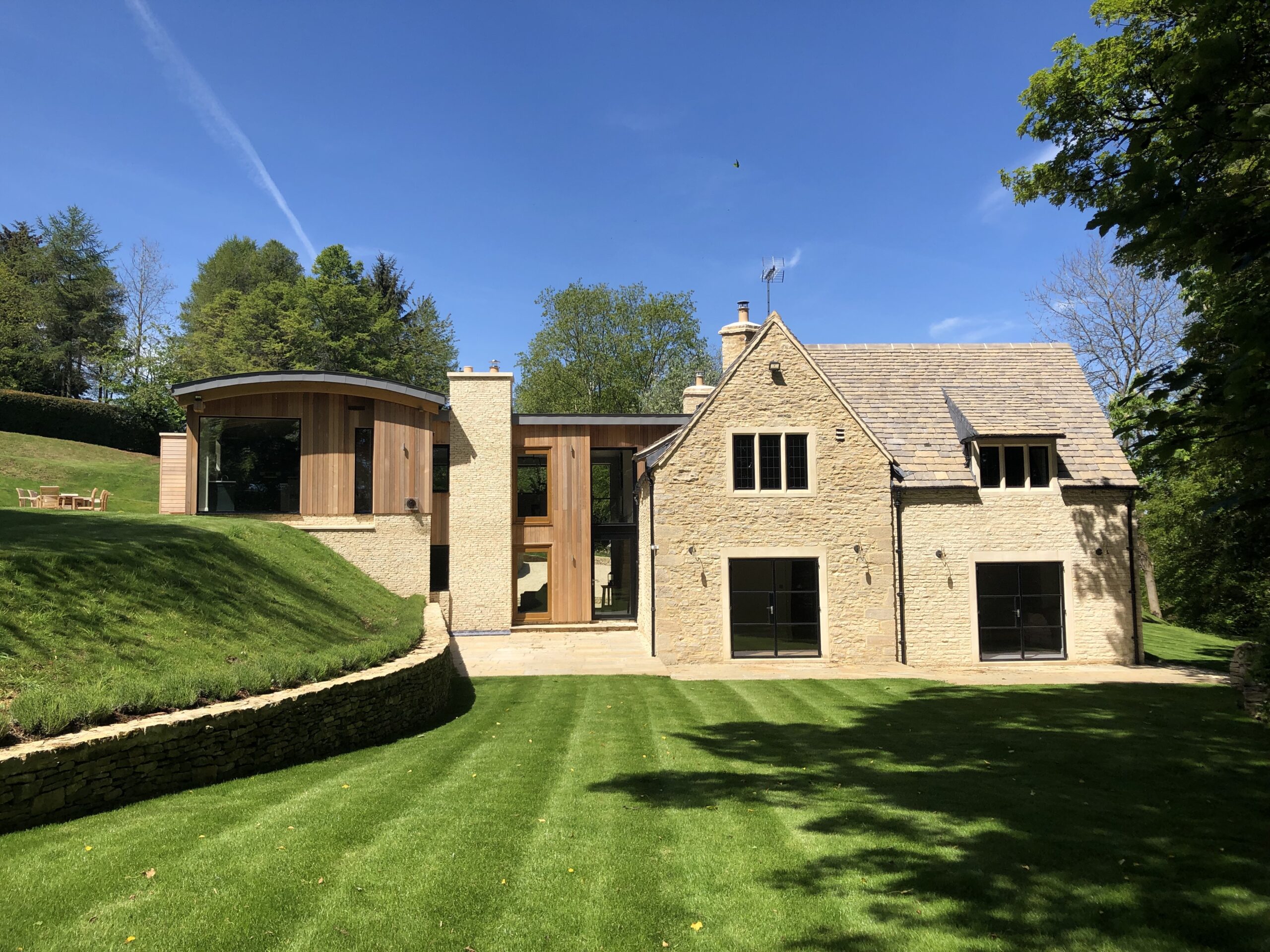 The extensive build included basement, underpinning, ground excavations, complete remodelling of the grounds and driveway access. Plus the challenge of renovating the traditional Cotswold architecture to blend with 21stcentury materials, technology and contemporary architecture.